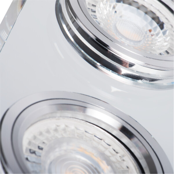Prostokątna oprawa na dwa źródła światła w kolorze srebrnym charakteryzuje się eleganckim wyglądem, a jej szklana obudowa stanowić będzie ciekawy i oryginalny element wyposażenia nowoczesnych wnętrz.