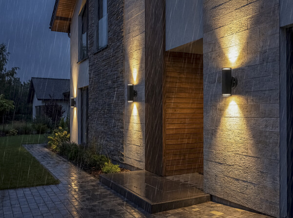 Kanlux RADILO to seria opraw ogrodowych i elewacyjnych obejmująca kinkiety o różnych sposobach świecenia - jednokierunkowe, góra–dół oraz modele z czujnikiem ruchu - a także słupki w dwóch wysokościach. Aluminiowa obudowa i klosz z wytrzymałego poliwęglanu w połączeniu ze szczelnością IP44 zapewniają trwałość w warunkach zewnętrznych. Wymienne źródło światła GU10 (max 11W) pozwala dopasować barwę i moc światła do charakteru przestrzeni.